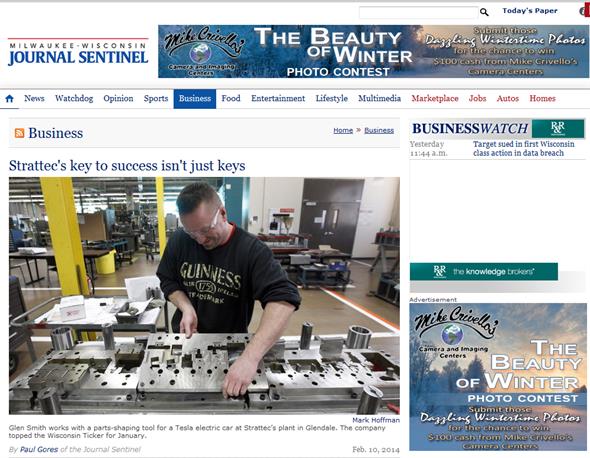 (10.02.2014) Today this article about STRATTEC/VAST was published in the Journal Sentinel - the primary newspaper in Milwaukee: